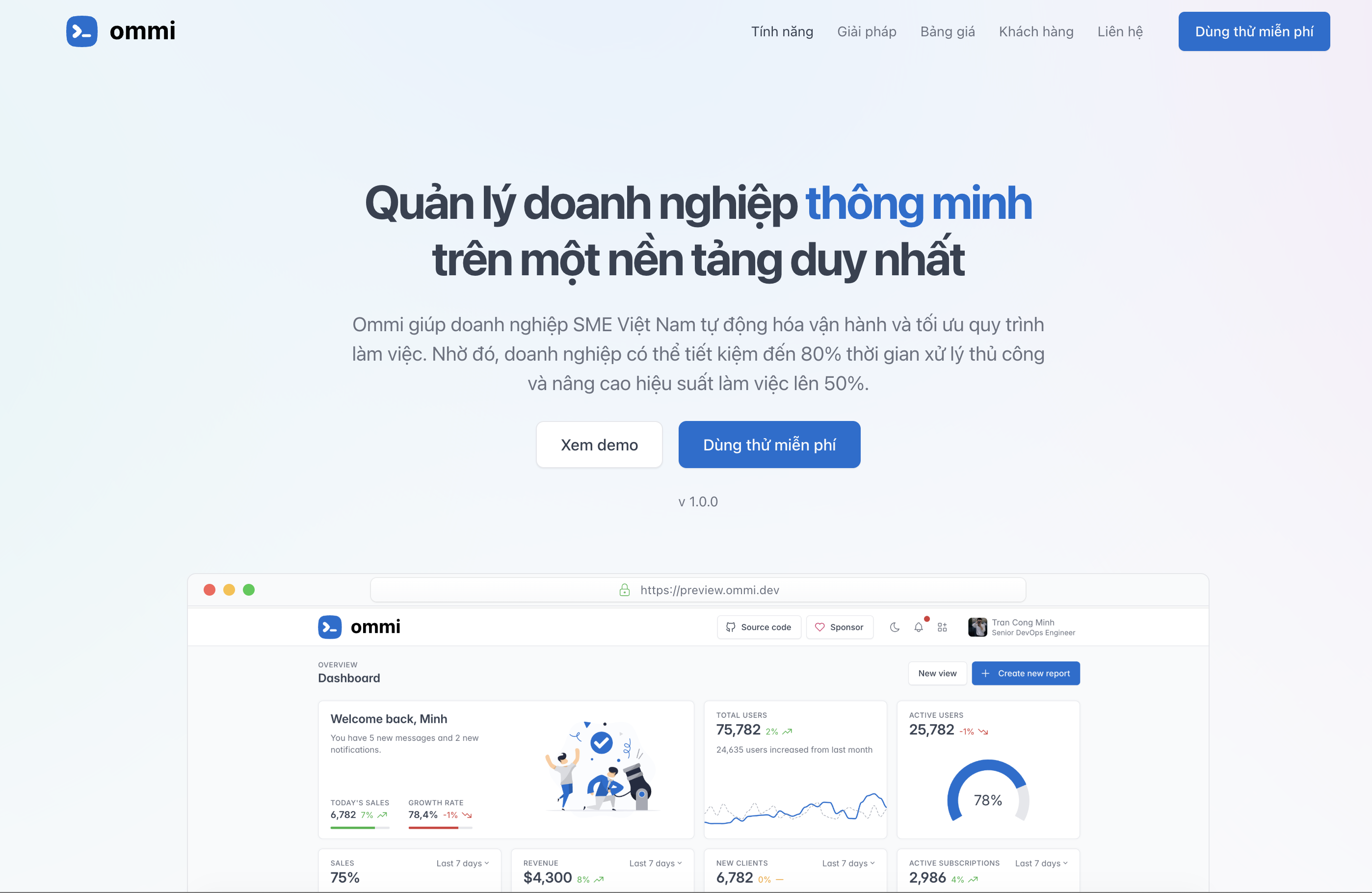 Ommi giúp doanh nghiệp SME Việt Nam tự động hóa vận hành và tối ưu quy trình làm việc. Nhờ đó, doanh nghiệp có thể tiết kiệm đến 80% thời gian xử lý thủ công và nâng cao hiệu suất làm việc lên 50%.